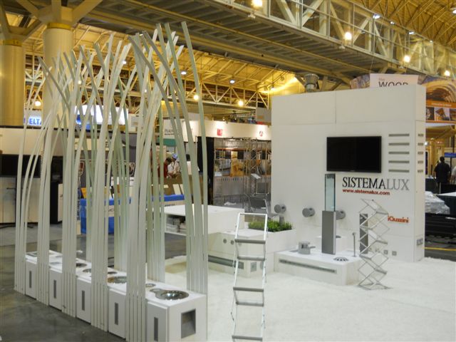 Lighting really stood out at this show, particularly LED lighting. There was, in fact, an entire section on just lighting. There was a company there that had LED lighting build into concrete panels. The lighting was close enough (and computer controlled) so that it turned a sidewalk into a full color, full motion billboard. The manufacturer sees this in use in walkways, lobbies and on the sides of buildings. Pretty intriguing stuff!