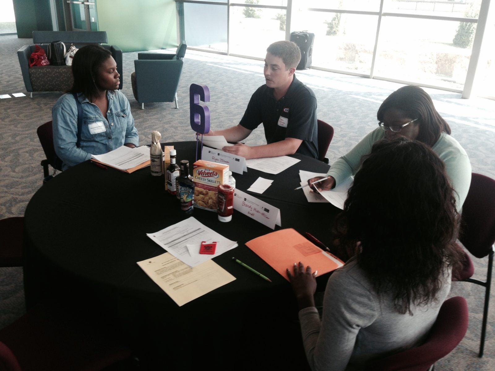 Five employers (represented by 8 teams of interviewers) were set up in an area where the chamber held its monthly networking event. Like that event, Direct Connect, it took on a “speed dating” event feel with teams of company representatives interviewing pairs of students for 5 minutes. Students came to the table with resumes and having done their homework on each company. The instructors also prepared their charges with coaching sessions and encouragement.
