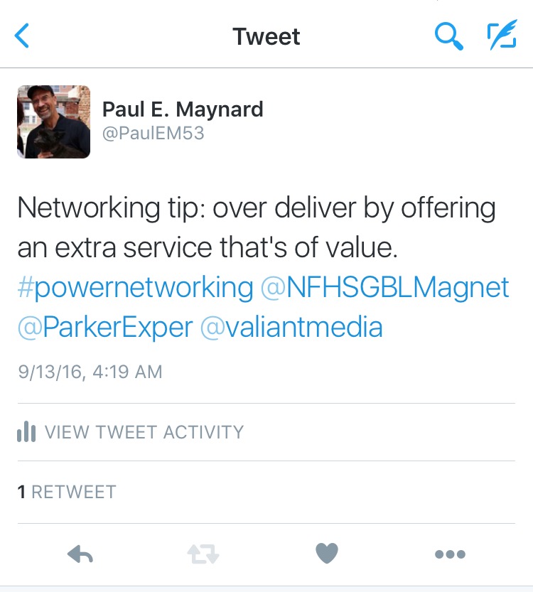 The daily “Networking Tip” tweet is the first thing I post each day. It’s my way of reaching out to my audiences with something we both expect and, I hope, look forward to.