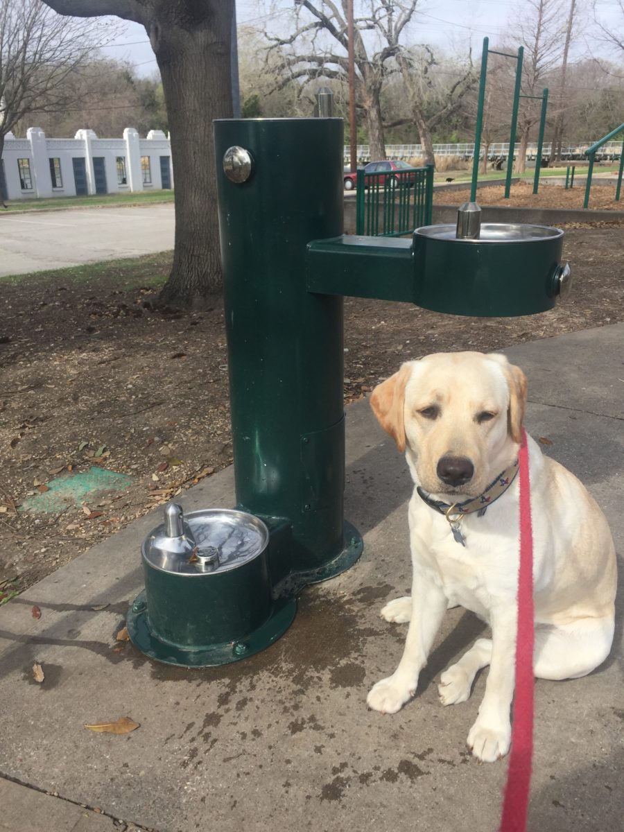 The idea came to me one day while I was walking one of my “clients,” Lulu, the yellow lab. Since I have to take photos of the dogs and text them to the owners anyway, why not add them to Harry’s Twitter feed? I conjured up the hashtag, created a pithy intro (“Stay hydrated,” as Lulu posed with a water fountain) and added in the handles of a few related or interested Twitter users. Besides Out of the Kennel (Erica’s company), I included the SPCA of Texas and Operation Kindness, a local rescue shelter. It was when I added Petco that it got interesting.